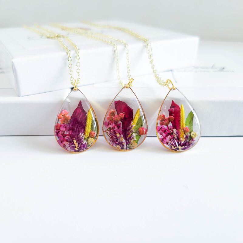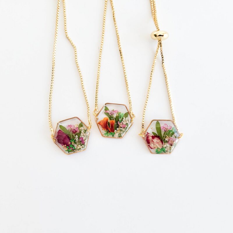Handcrafted jewelry made with real pressed flowers, carefully preserved to capture nature’s beauty in timeless designs.