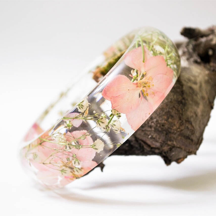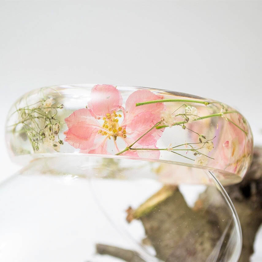 Pressed flower bracelet, real flower bangle, real flower jewelry, plant bracelet, handmade jewelry, unique gift for her, handmade gift