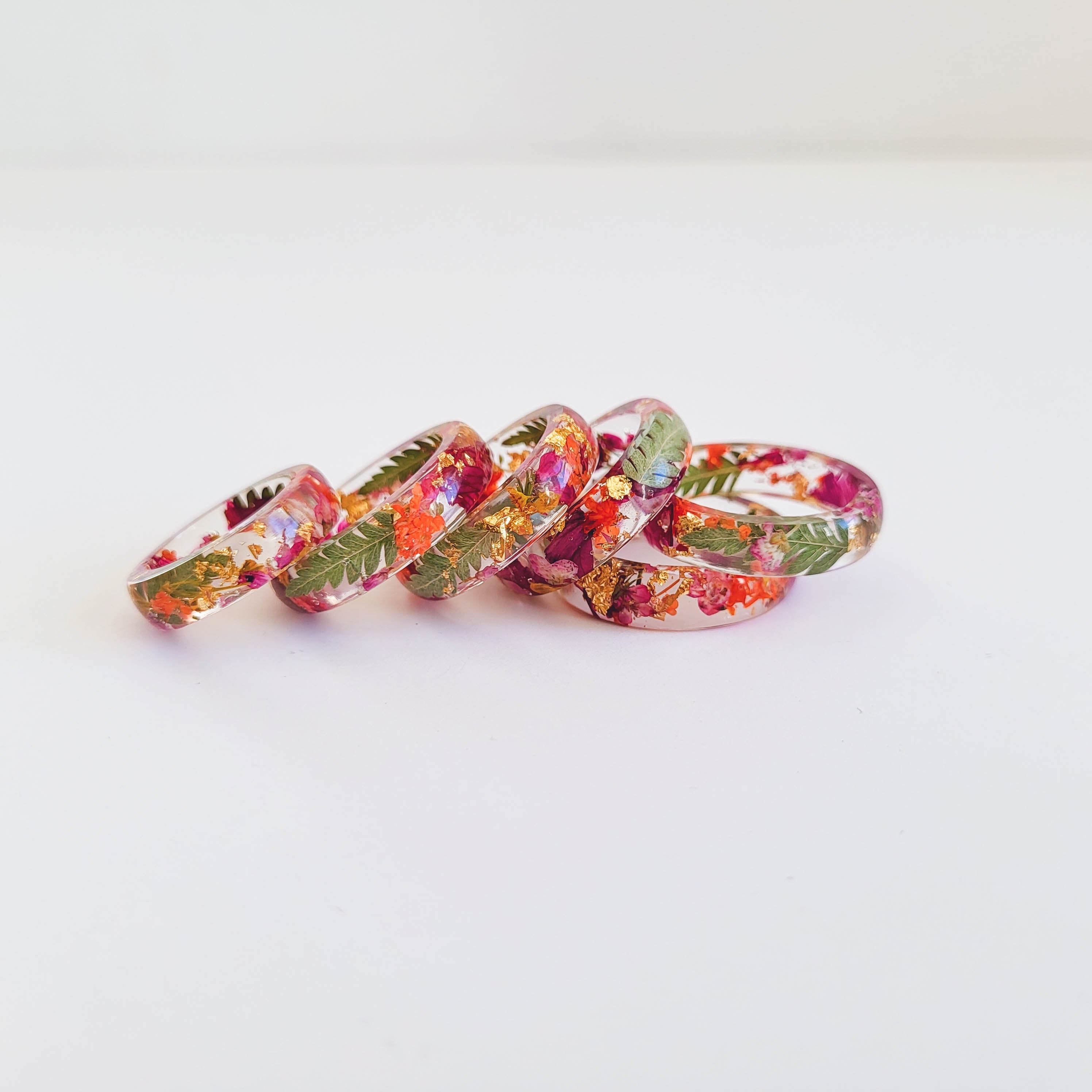 Pressed flower resin ring band. Available sizes 4, 5, 6, 7, 8, 9.